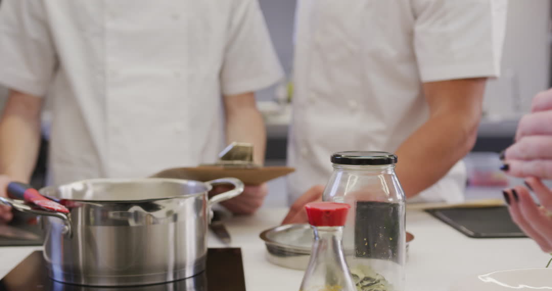 href="https://pikwizard.com/video/chefs-preparing-meal-in-modern-cookery-class-kitchen/acbc8ab125becc0e67bf27d10d3d533d/"