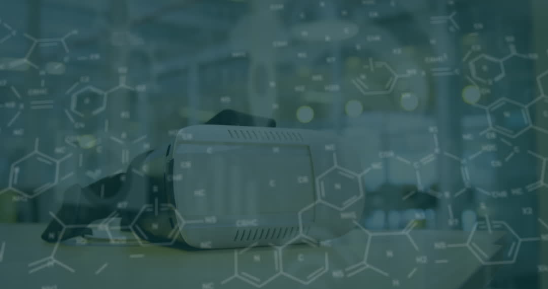 - Chemical Formulas Overlaying VR Headset in Technology Lab