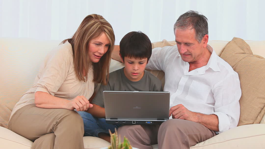 A charming scene captures a child attentively engaged with his grandparents while using a laptop together. This signifies technology's role in bridging generational gaps and promoting learning. This video is ideal for use in articles and blogs about family dynamics, technology in education, intergenerational relationships, and digital connectivity. It could also be useful for advertising family-oriented technology products or services.