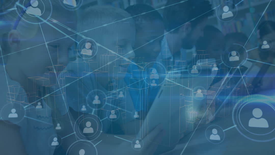 - Children Using Tablets with Digital Network Overlay in Classroom