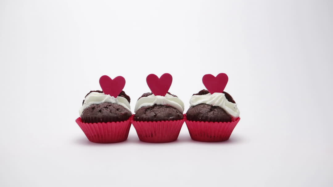 Chocolate Cupcakes with Heart Toppers on Valentine Theme Video