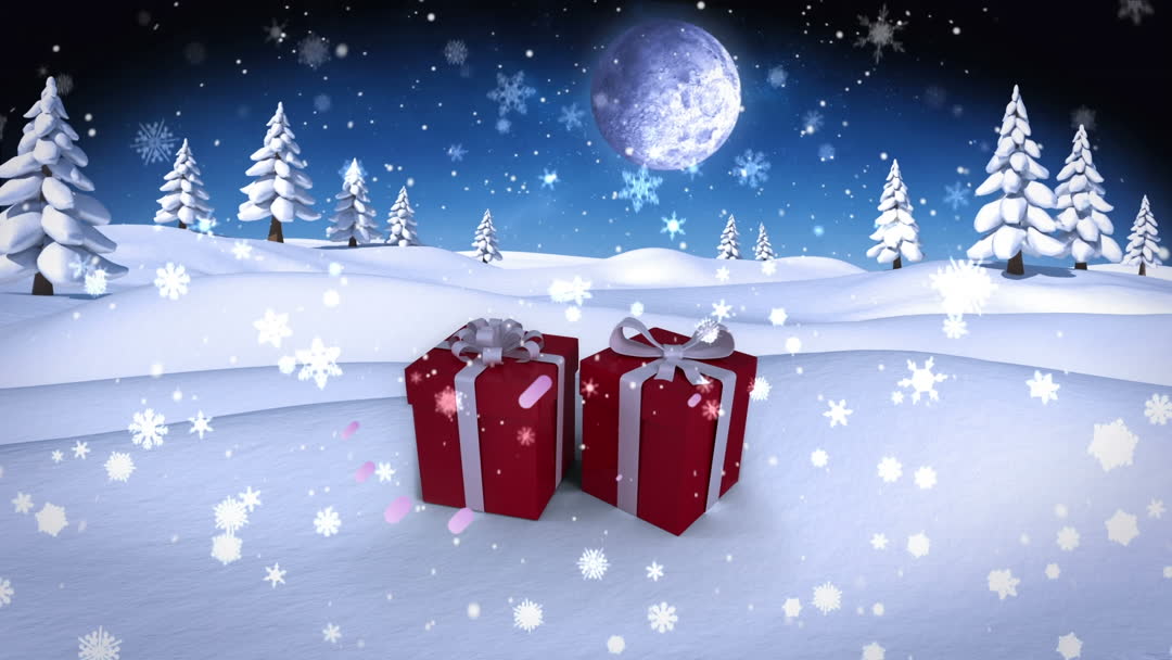 - Christmas Gifts in Snowy Winter Wonderland with Full Moon