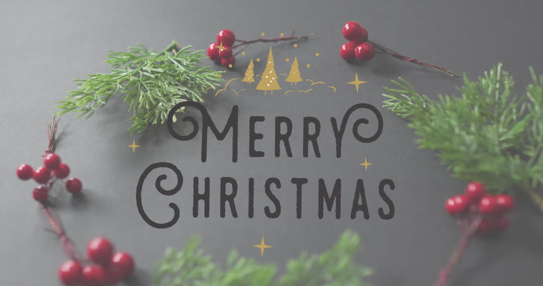 Festive greeting integrating animated elements with Christmas decorations. Ideal for holiday greetings, social media posts, or digital marketing campaigns, this visual conveys warmth of traditions with lively berry sprigs and thematic text artistry.