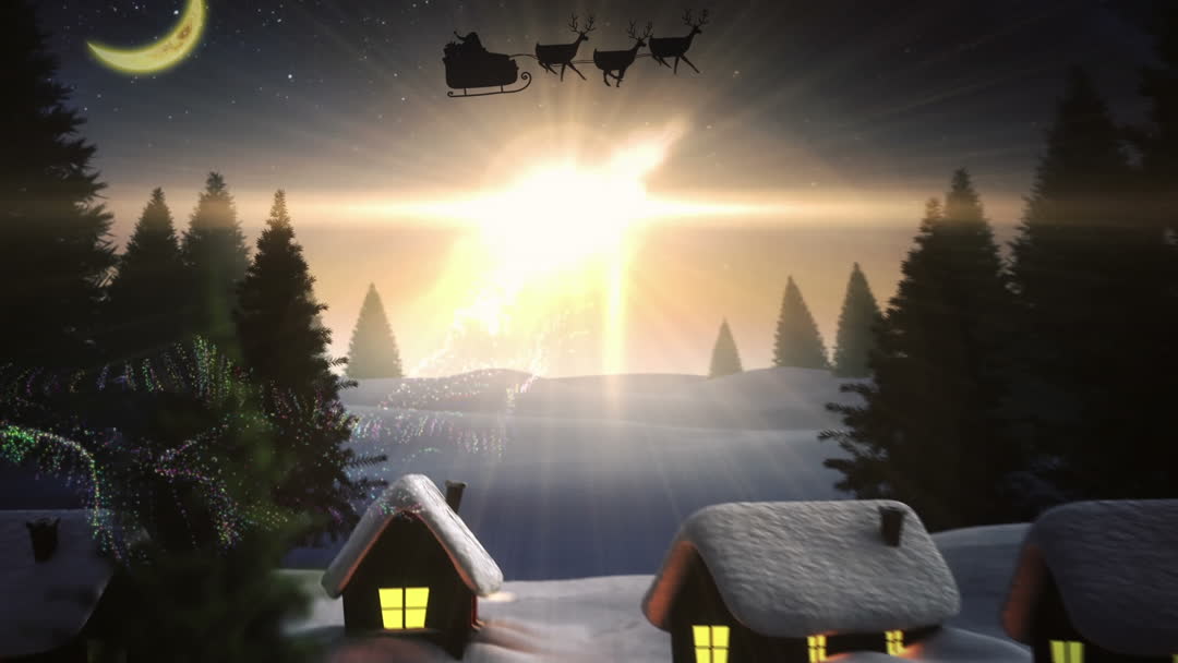 - Christmas Night Scene with Santa and Reindeer Silhouette