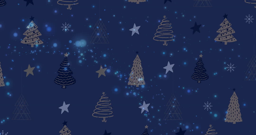 Seamlessly looping Christmas tree design with starry lights on a dark blue background conveys a warm, festive mood. Inspired by traditional holiday motifs, it serves as perfect coverage for holiday wrapping paper, digital backgrounds, and winter themed décor.