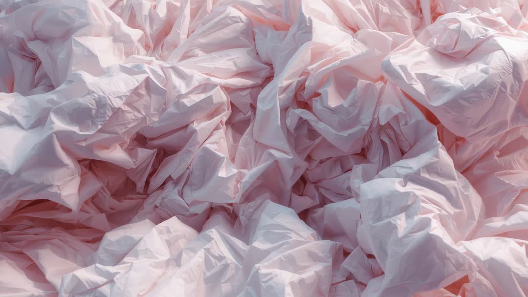 AI Generated Image. Presenting single video frame capturing dynamic crumpling and subtle movement of pale pink fabric, showcasing layered folds, delicate wrinkles, and soft directional lighting. Highlighting tactile texture, gentle shadow gradients, and calm pastel tones that evoke softness and luxury. Offering seamless loop potential for motion backgrounds, product showcases, textile presentations, fashion editorials, social media reels, and website hero banners. Working well for beauty and cosmetics packaging mockups, branding projects, mood boards, interior design concepts, and abstract art compositions. Allowing flexible cropping for horizontal or vertical orientation, ample negative space for overlay text or logos, and slow-motion editing for calming visual loops and transitions.