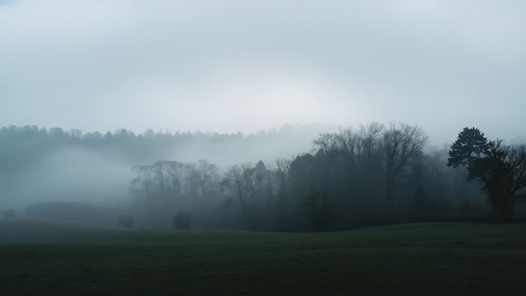 AI Generated Image. Video clip showing fog rolling across meadow while halo of light forming over distant treeline and lone tree silhouetting foreground. Footage conveying moody, atmospheric dawn mood with soft blue-green tones and layered depth for cinematic storytelling. Ideal for website headers, social media banners, documentary openers, cinema montages, meditation app backgrounds, environmental campaigns, album covers, and editorial spreads. Including usage tips: gentle teal color grade, slight contrast boost for silhouette separation, slow crossfade for looping, cropping options for 16:9 and vertical formats. Supplying calm, mysterious, contemplative mood suitable for projects about nature, weather, rural life, solitude, or seasonal transitions.