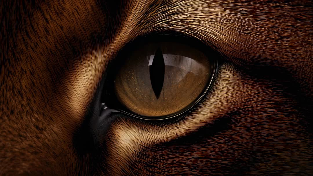 - Cinematic Macro of Cat Eye Reacting to Warm Window Light, Amber Iris and Fur Texture