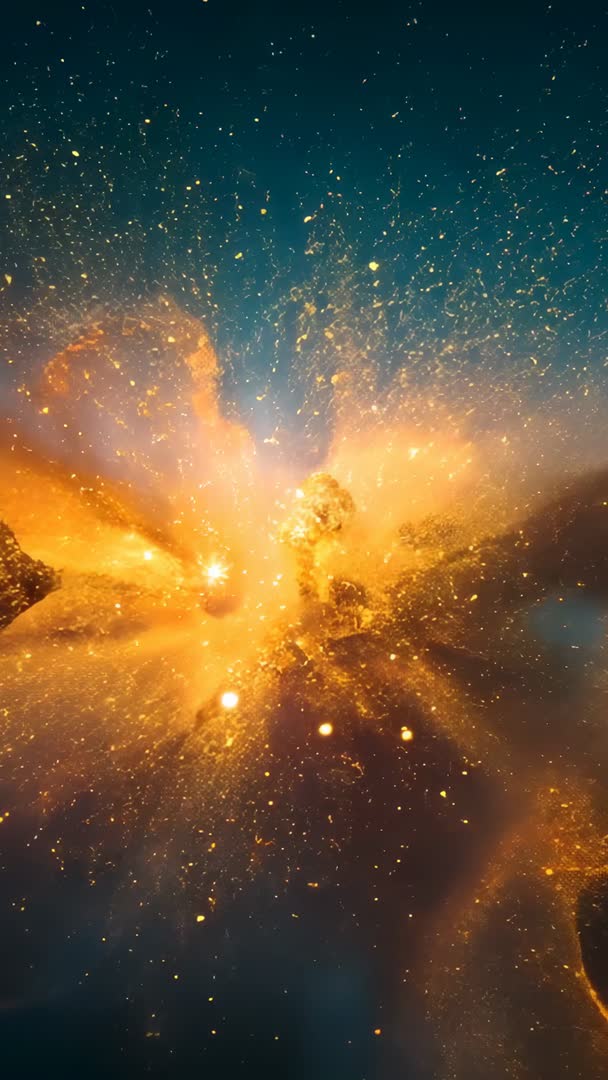 - Cinematic Vertical Galaxy Explosion: Golden Nebula Expansion with Sparkling Stellar Embers