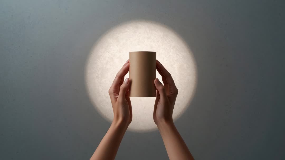 AI Generated Image. In a minimalist setting, elegant hands gently lower a cylinder inside a spotlight that creates a distinct circular pattern. This refined display focuses on balance and symmetry, highlighting the smooth movement and harmonious interplay between light and shadow. Ideal for uses in themes related to minimalism, precision, art, design concepts, and product promotions where elegance and subtlety are imperative. Perfect for visual storytelling demonstrating calmness, balance, and minimalist elegance.