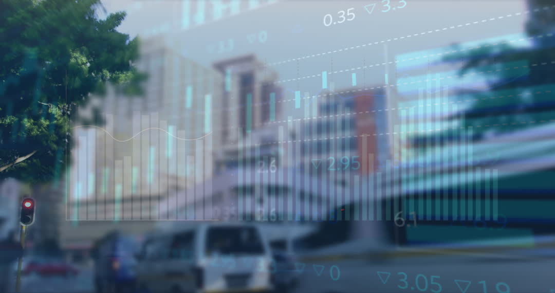This visual represents the intersection of city life and cutting-edge data analytics, emphasizing the integration of technology in an urban setting. Suitable for use in presentations on global economy trends, smart city initiatives, data-driven business strategies, or illustrating futuristic planning and analytics concepts.