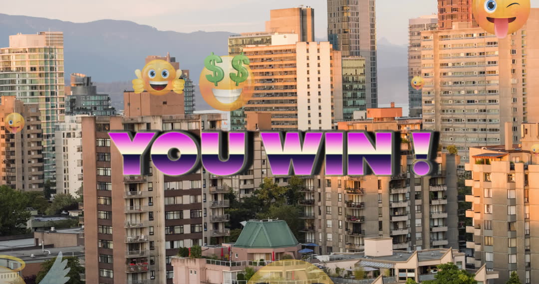 - Cityscape with Animated 'You Win!' and Emoticons Overlay