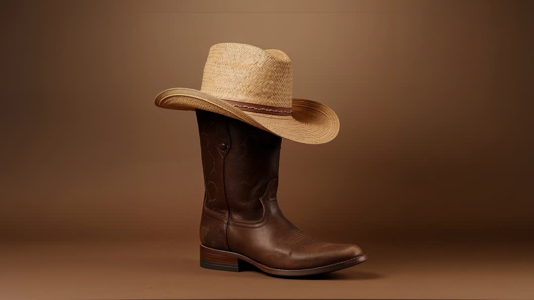 - Classic Western Boot and Straw Hat Composition in Studio Setting