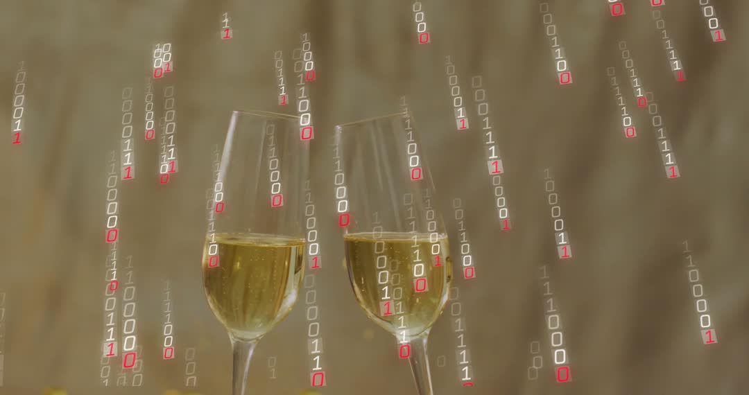 - Clinking Champagne Flutes with Falling Binary Code Celebrating Digital Success