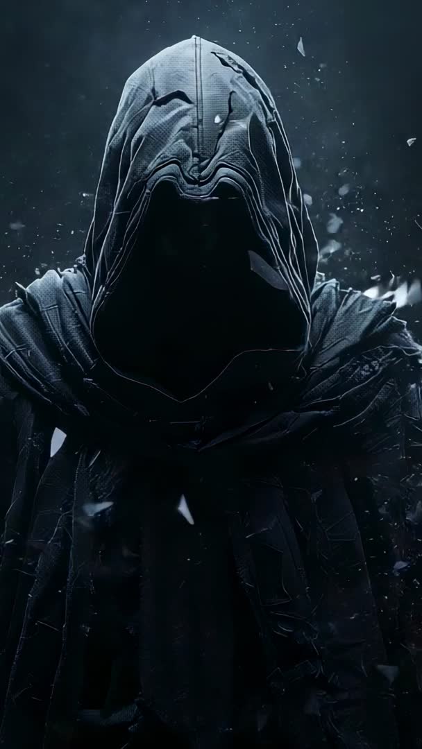 AI Generated Image. Featuring cloaked figure emerging from void while summoning shards and drifting debris, highlighting tattered cloak texture and moody rim lighting. Delivering cinematic vertical composition optimized for mobile stories, reels, and short-form trailers. Serving as dramatic opener for fantasy game trailers, dark film teasers, occult podcast promos, or Halloween event ads. Supporting VFX workflows and compositing with clear silhouette and particle elements for easy layering. Suiting use as looping background, title sequence overlay, social media vertical ad, or concept art showcase. Offering color grading flexibility and room for sound design, voiceover, or animated text overlays.