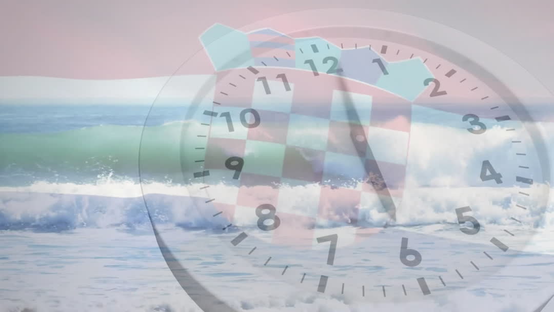 - Clock Over Croatian Flag and Ocean Waves Animation
