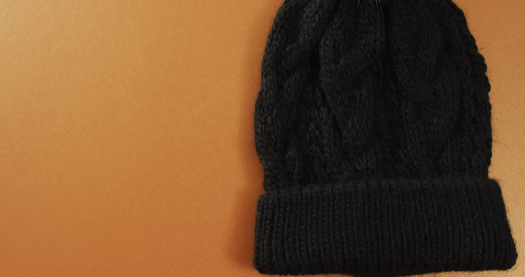 Black knit hat on an orange backdrop highlights autumn and winter fashion styles, suitable for promotional material comparing color contrast, discussing seasonal fashion in clothing blogs, or creating warmth and coziness yet with stylish appeal in winter clothing ads.
