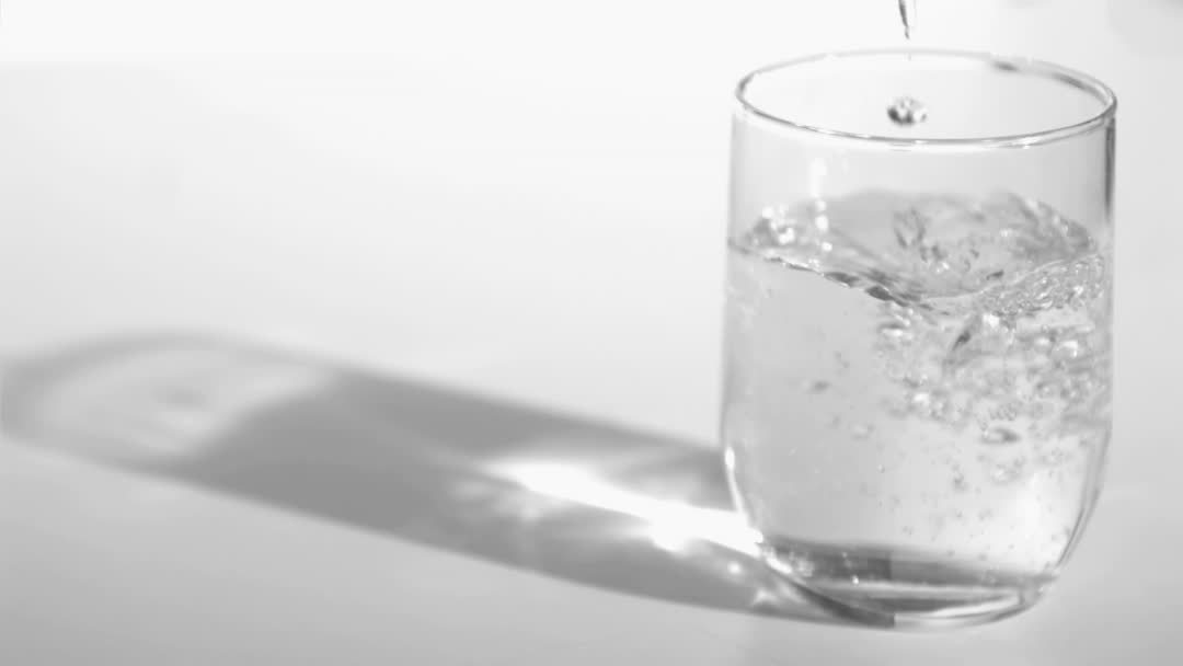Close-Up of Water Pouring Smoothly into Glass Against Serene Grey Backdrop Video