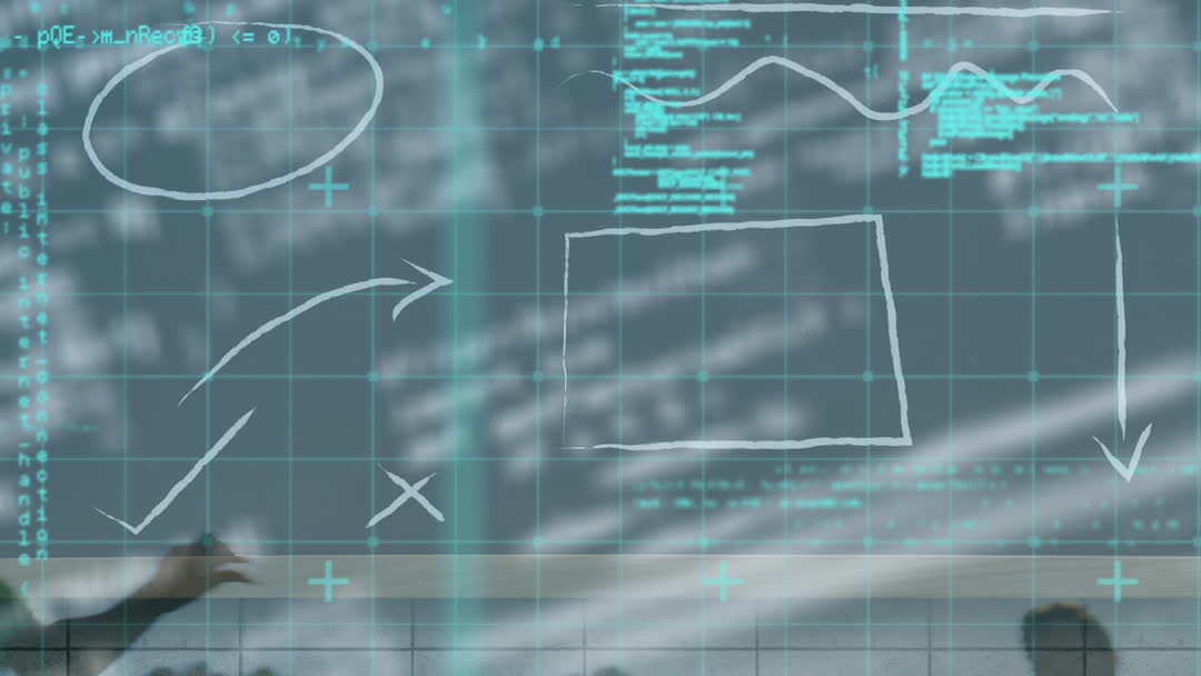 This video depicts an abstract combination of technology and sports, featuring an overlay of coding and programming symbols with silhouettes of athletes like soccer players. Ideal for articles exploring the intersection of technology in sports, data analysis in athletics, or innovative thinking in competitive scenarios.