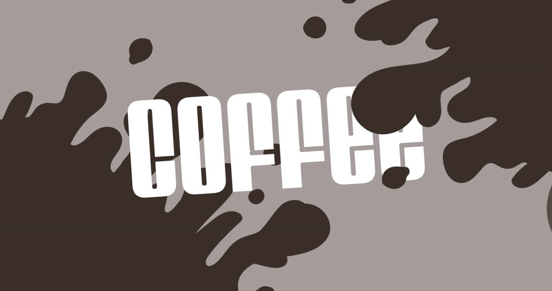 Abstract design with vivid coffee splashes contrasts against muted beige, emphasizing the energetic theme of coffee. With bold white letters spelling 'coffee', this could be effective for marketing campaigns, cafe promotions, or digital content related to coffee drinks and vending. Perfect for adding a dynamic visual touch to beverage industry materials and cafe ambience crafting.