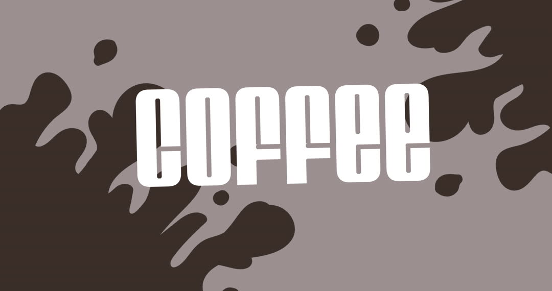 Digital design featuring the word 'coffee' with abstract coffee stains on beige background. Perfect for coffee shop promotions, blog headers about beverages, or advertisements for cafés. Stylish and retro vibe suits both social media graphics and print materials for coffee-related businesses.