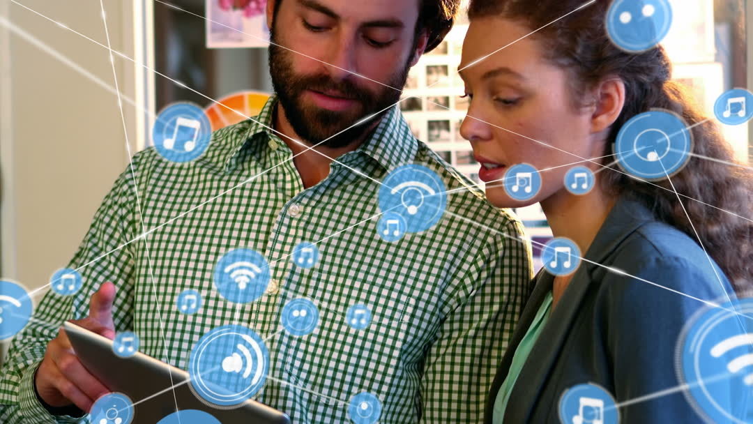 Colleagues Collaborating with Digital Networking Icons Video