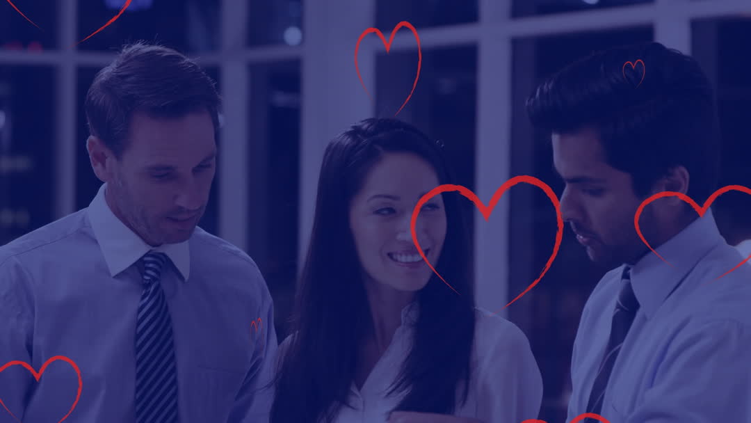 Colleagues Collaborating with Heart Graphic Overlays Video