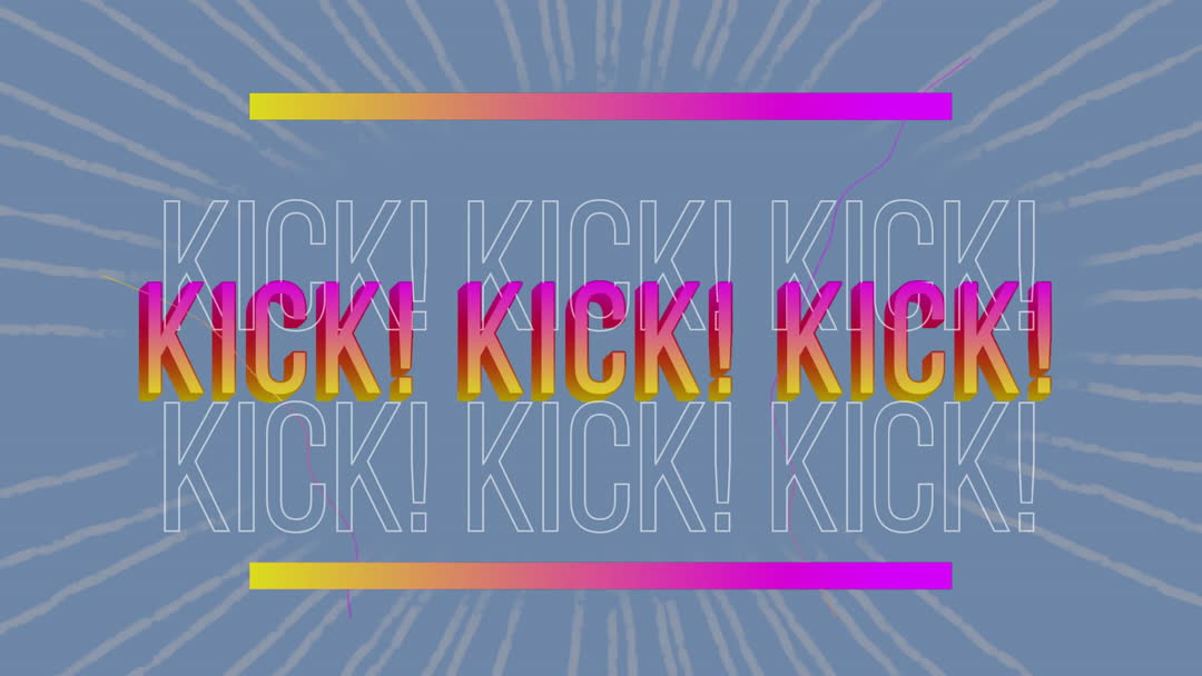 - Colorful Animated Text 'Kick!' with Gradient Over Blue Background