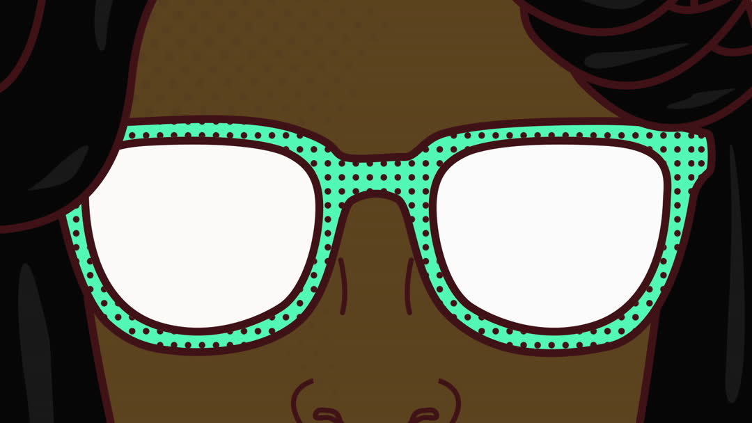 This artistic and colorful animation features a cartoon representation of an African American woman with distinctive blue glasses against a bold yellow background. Adding dynamic moving graphics and shapes, this illustration offers a playful and contemporary visual statement. Ideal for use in creative design projects, educational materials, or modern marketing campaigns looking to incorporate animated characters with vibrant elements.