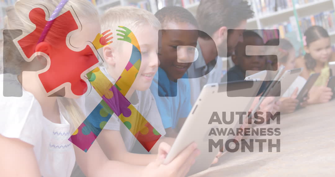 This educational design featuring diverse children engaging with tablets underlines Autism Awareness Month's significance. The colorful puzzle and ribbon symbolize autism awareness and connection. Suitable for campaigns, educational articles, or social media posts promoting autism education and inclusivity.