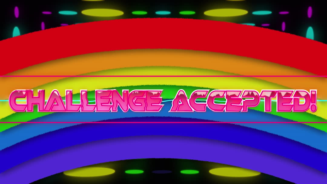 This vibrant animation showcases a bold 'Challenge Accepted' banner over a vibrant rainbow with neon elements and seamless patterns in the background. The lively combination creates a dynamic, motivational atmosphere perfect for presentations about resilience, positivity, and enthusiasm. Use this in gaming interfaces, tech announcements, or digital design projects to convey energy and confidence.