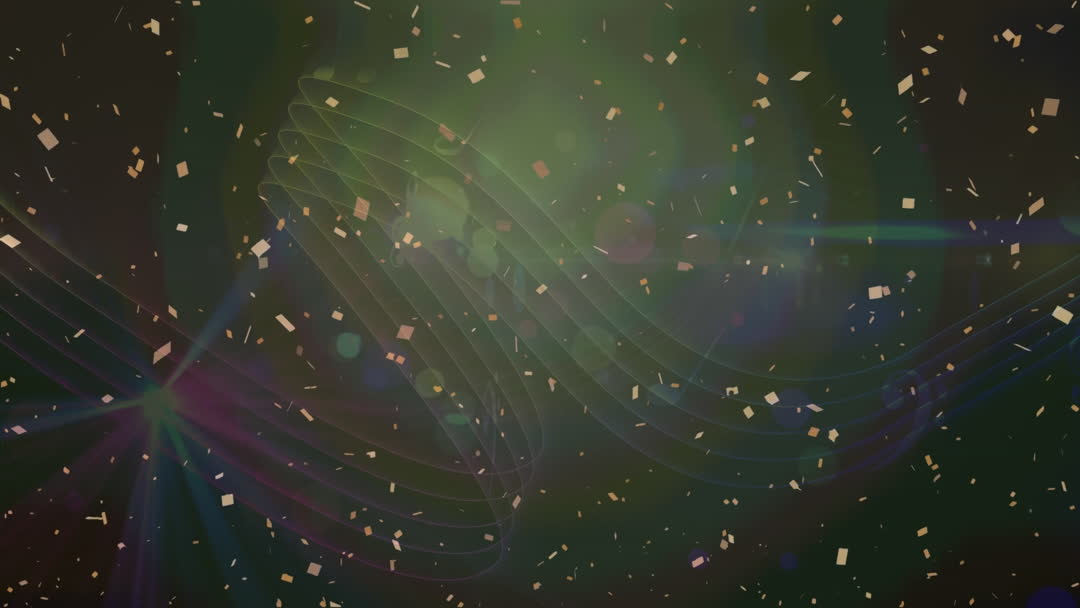 Vibrant confetti animation floating over a dark abstract background provides a festive and celebratory mood. Ideal for use in digital art projects, event announcements, party invitations, or promotional materials highlighting creatively festive themes.