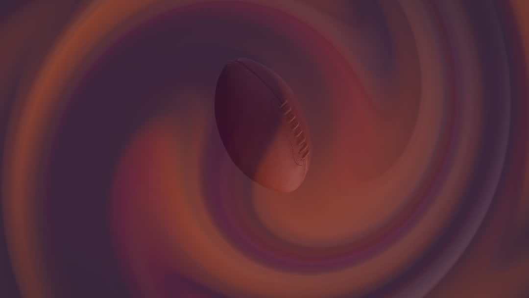 Dynamic and vibrant animation showcases the intersection of sports and technology. Ideal for use in sports event promotions, technology-influenced sports advertisements, and dynamic artistic displays, the swirling abstract background with various rugby balls delivers an energetic visual impact.