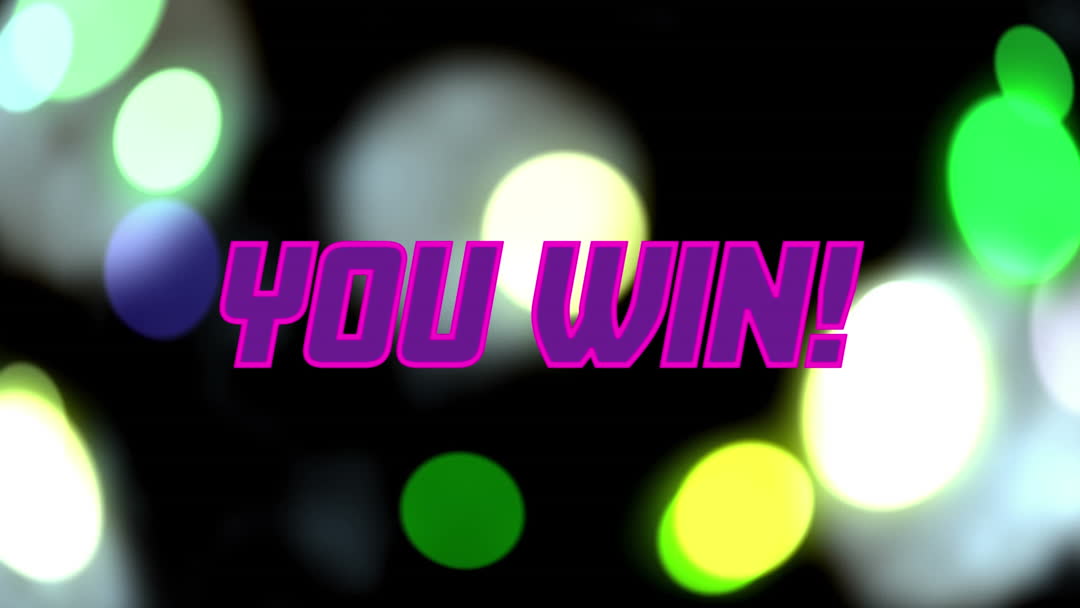 Vibrant glowing background features motion animation with 'You Win' text overlay in bold pink font. Perfect for designs related to celebrations, achievements, competitive victories. Use in digital/social media projects to convey a festive or victorious message.