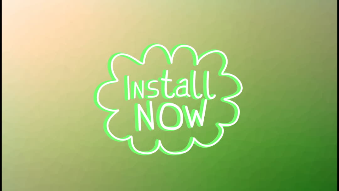 This vibrant animated scene features a white glowing 'Install Now' text encased within a playful cloud shape. The backdrop exhibits a smooth gradient of green and beige hues, creating a warm and inviting atmosphere. Perfect for web or app installation tutorials, technology reviews, or promotional material encouraging the download of digital applications.