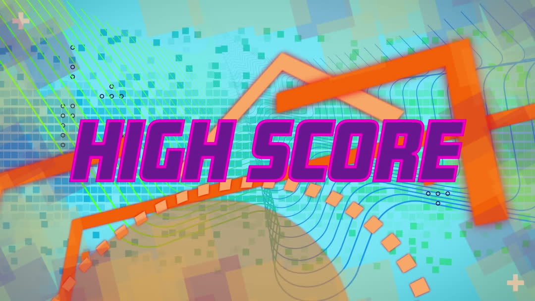 Vibrant and dynamic videory featuring the 'High Score' text overlaid on an animated background of geometric shapes and lines. This composition mimics the feel of a vintage video game interface or a modern app UI. Ideal for use in marketing materials related to gaming, technology podcasts, or digital arts events, emphasizing the energy and excitement of technological innovation.