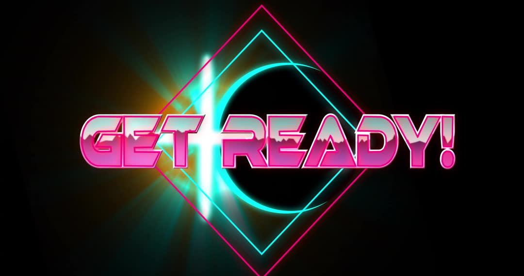 - Colorful Neon 'Get Ready' Text with Futuristic Background