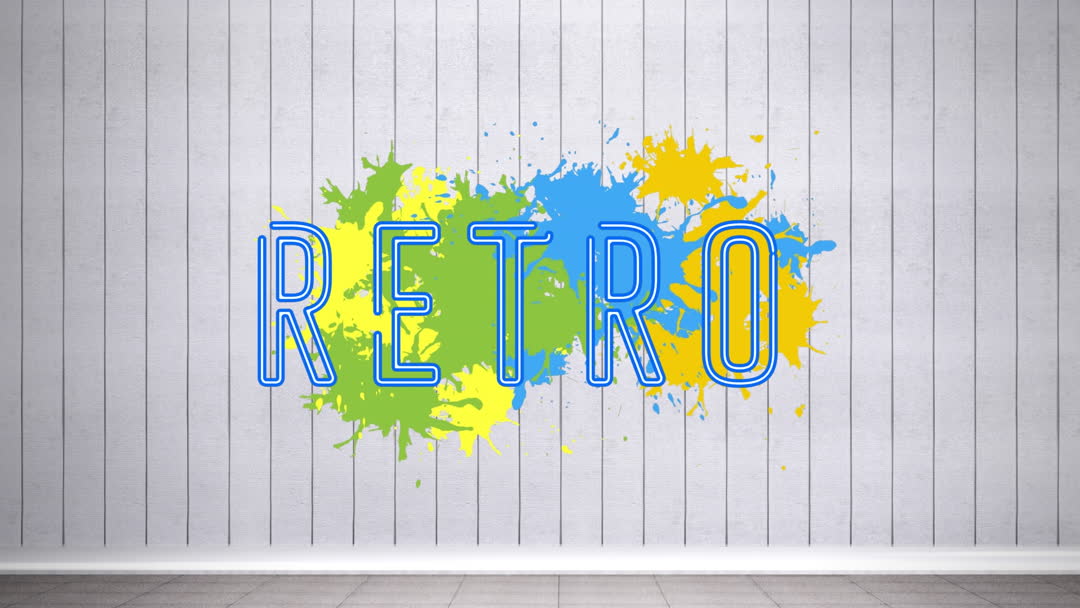 - Colorful Retro Neon Text with Paint Splashes on Wall