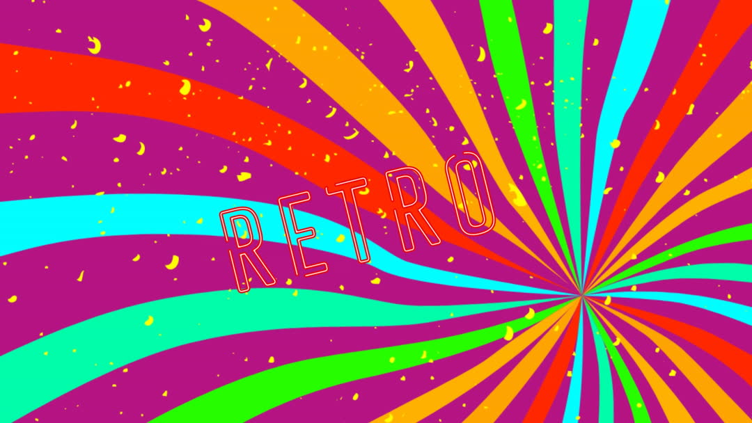 Vibrant digital artwork with striped patterns, retro appeal showcasing falling confetti. Add energy to digital media, posters, or presentations with vintage and psychedelic themes.