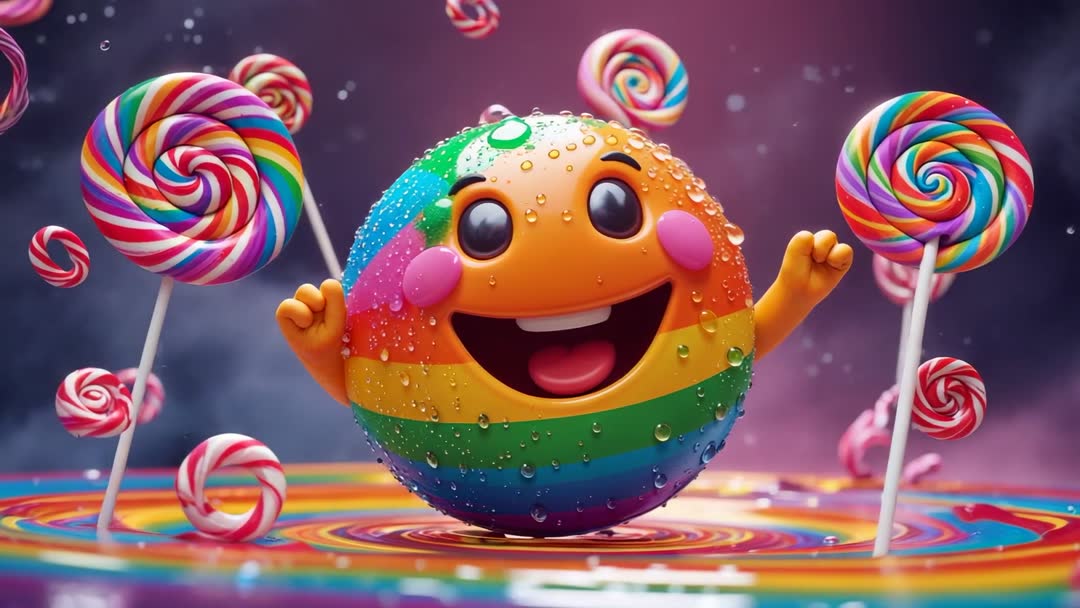 Colorful Smiling Sphere in Whimsical Candy World Video