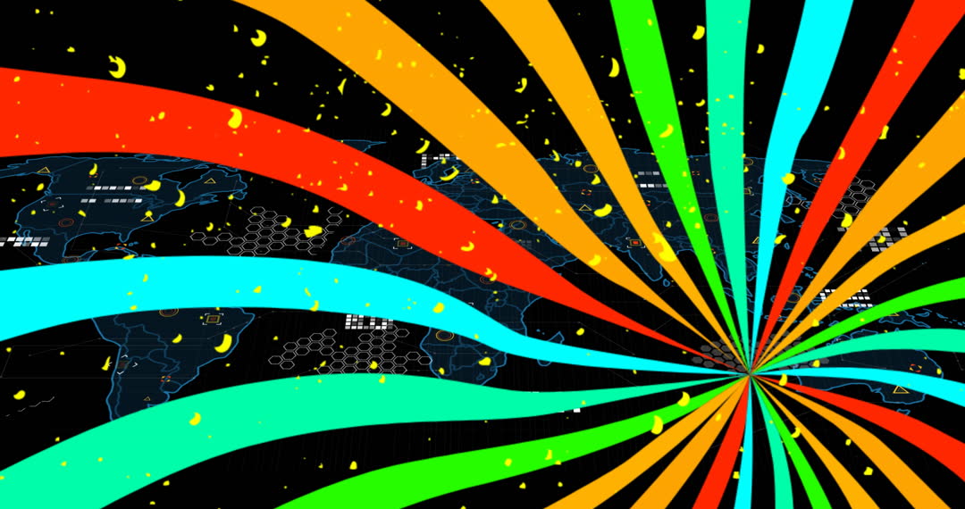 Abstract animation featuring colorful stripes against a world map background, ideal for engaging presentations and media content. Great for celebrating global events or conveying a sense of connected technology and cultural diversity.