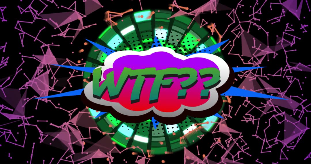 Vivid and dynamic digital art featuring the bold 'WTF?' typography surrounded by abstract geometric shapes. Ideal for adding a touch of modernity and color to digital presentations, posters, social media posts, or creative projects seeking explosive vibrancy.