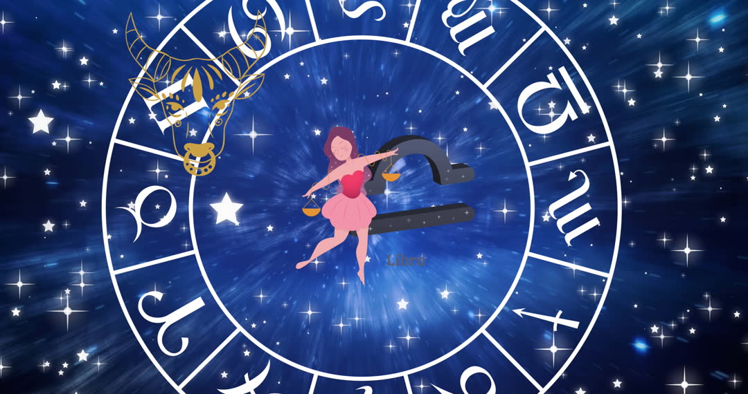 Beautiful depiction of Taurus and Libra with zodiac symbols in a vibrant, glowing starry sky. Ideal for horoscope websites, astrology-related apps, or merchandising such as posters and calendars to promote interest in astrological forecasts and cosmic themes.