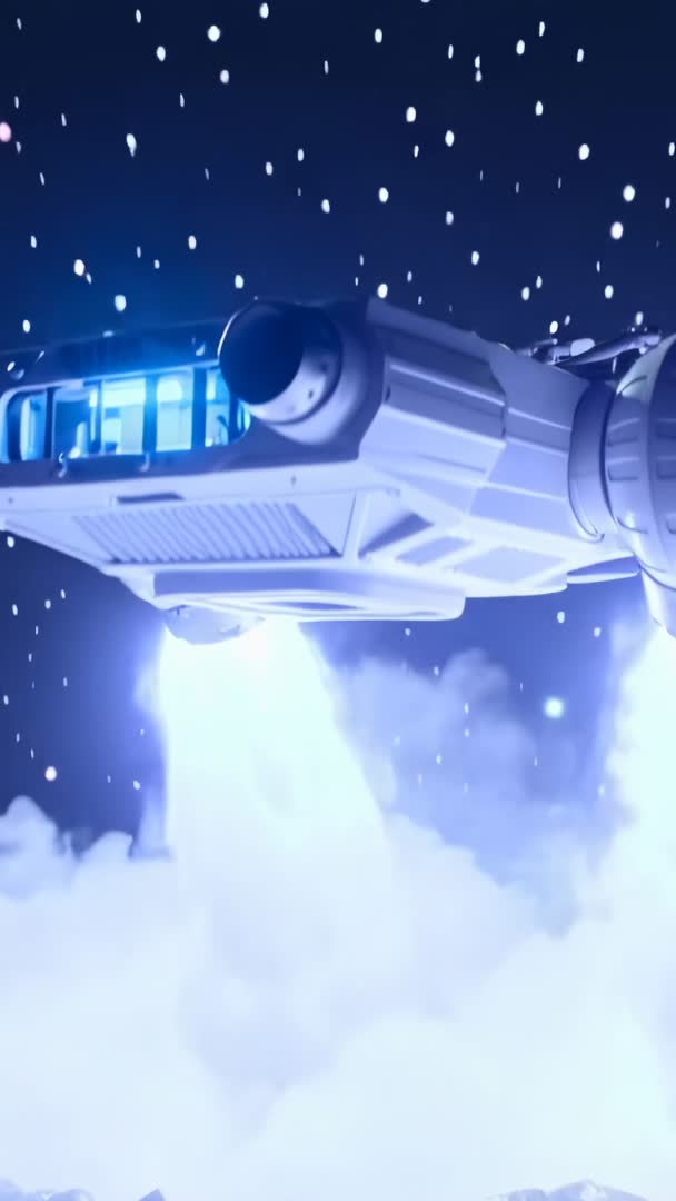 AI Generated Image. Vertical video clip showcasing compact twin-nozzle spacecraft lifting off while emitting bright blue plumes and billowing smoke against starfield and nebula backdrop. Close-up cockpit and engine detail emphasizing futuristic design and powerful thrust. Motion and lighting creating cinematic atmosphere and sense of speed. Serving as dramatic opener for sci-fi trailers, title sequences, app intro screens, promotional ads for aerospace or gaming, educational content about propulsion, and social media vertical stories. Editors applying slow-motion cuts, color grading, and immersive sound design to increase drama. Color palette pairing neon blue with deep indigo for modern tech look. Optimized for 9:16 vertical formats, supporting overlay text and motion graphics for branding and lower-third captions.