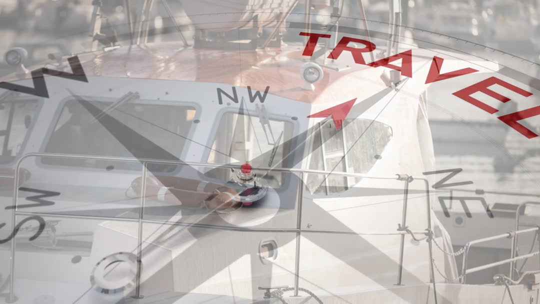 Compass Overlay with Boat Symbolizes Travel and Direction Video