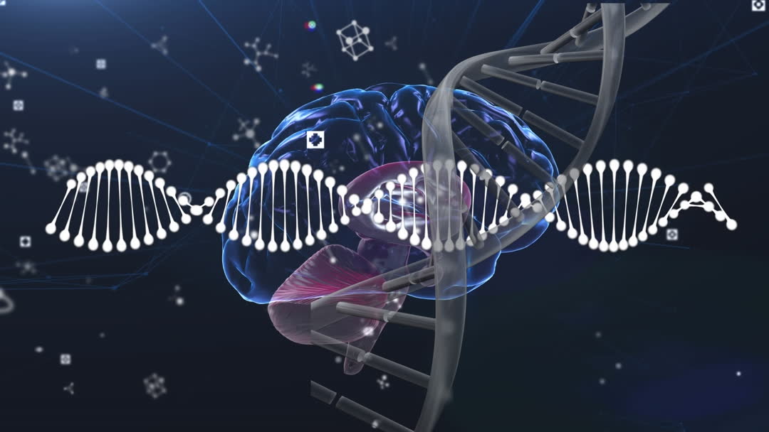 Visual exploration of the connection between genetic structures and brain functions featuring intricately designed DNA strands intertwined with a 3D representation of the human brain. Ideal for use in medical research presentations, biotechnology developments, neuroscience lectures, or digital health applications. Enhances content related to genetic engineering or scientific data visualization.