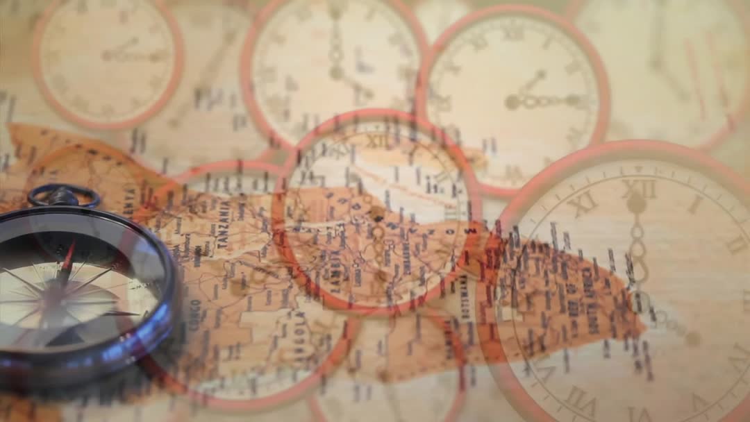 Composite Map with Tanzanian Landscape and Vintage Timepieces Video