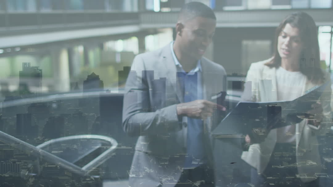 Concept of Global Business Strategy with Cityscape Overlay Video