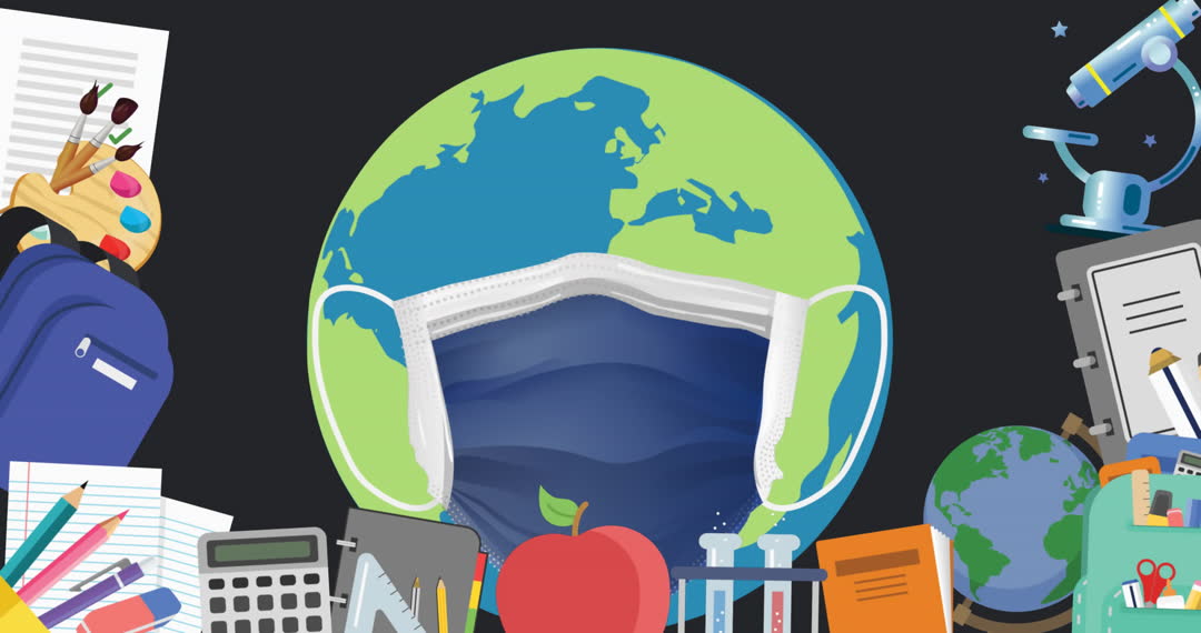 - Conceptual Animation of Pandemic and Education with Globe and Supplies