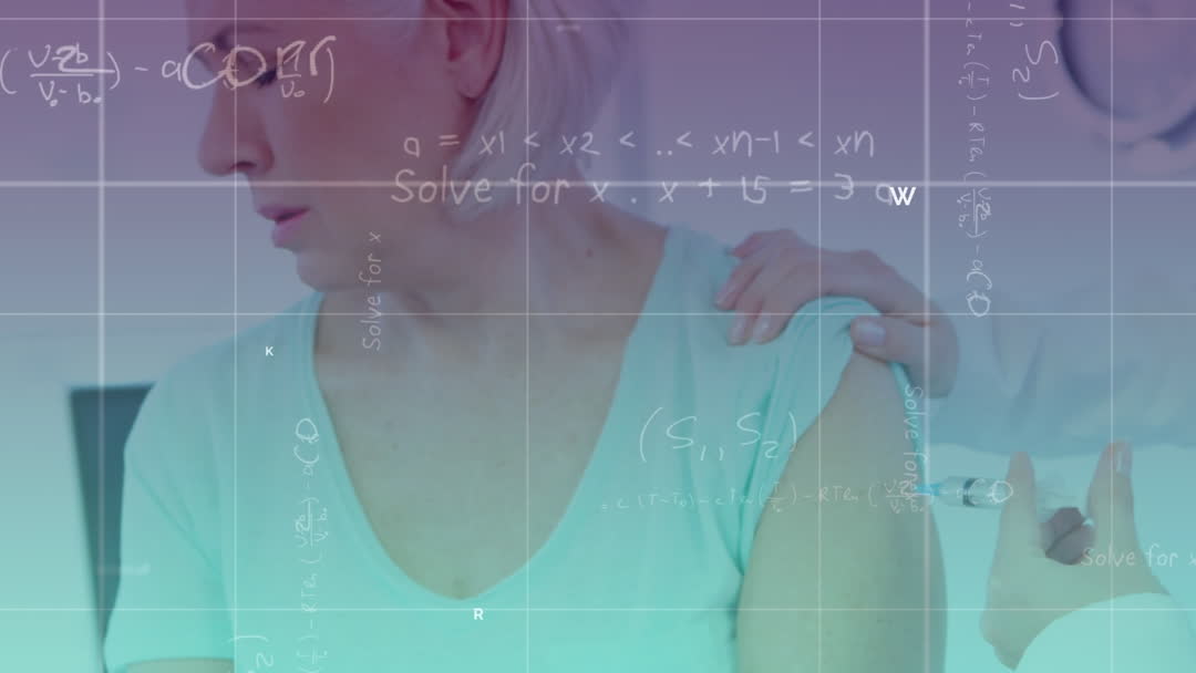 Digital graphic depicts woman with overlay of equations and mathematical puzzles, symbolizing blending of technology and human effort. Ideal for use in materials about problem-solving, concept visualization, or illustrating tech-human collaboration in modern business contexts.